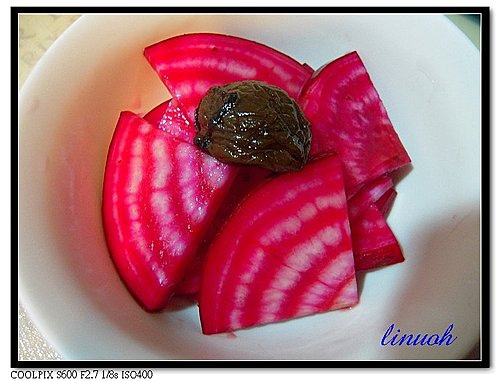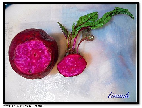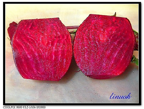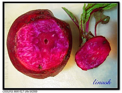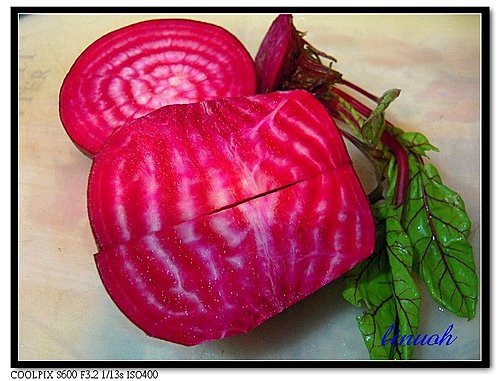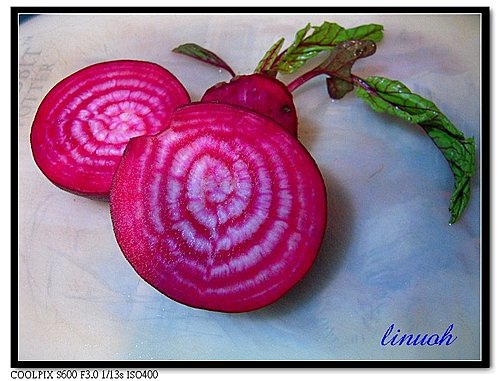 ↑甜菜根橫切或直切都可以清楚看見白色紋路。