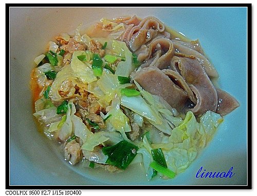 和燙熟後乾拌麵或湯麵均可依個人喜好調配。這料理方式簡單又好吃。